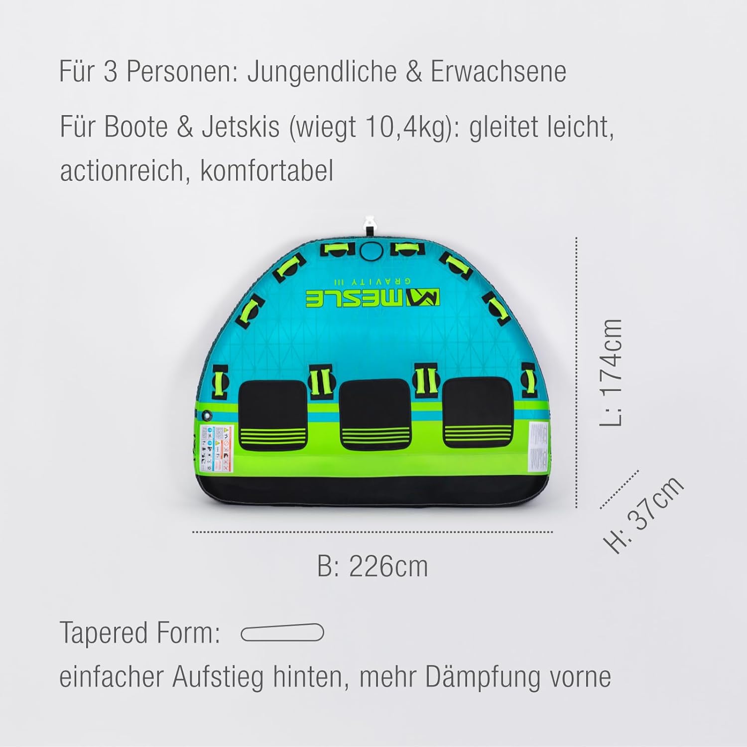 - Utilisation optimisée avec une corde de remorquage Mesle : Parfaitement conçue pour la traction, garantissant une expérience de glisse fluide.